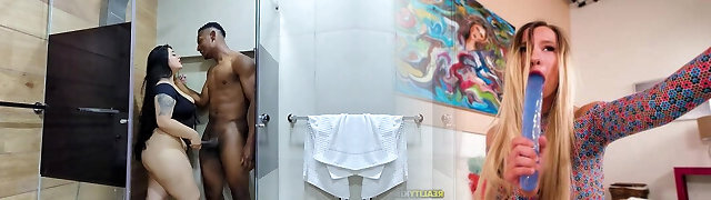 Hardcore fucking in the douche with chubby roommate Lily Morena