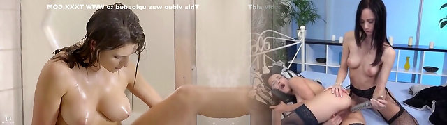 A couple of slim black haired chicks Laura and Danielle have hot hook-up in bath
