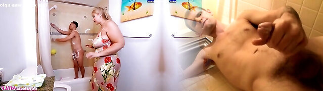 BBW Cougar stepmom is pouring her bap milk for hungry stepson