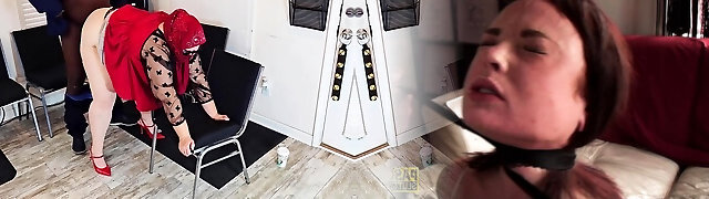 Black dude is throatfucking a chubby, white brunette, Virgo Peridot and then fucking her from behind