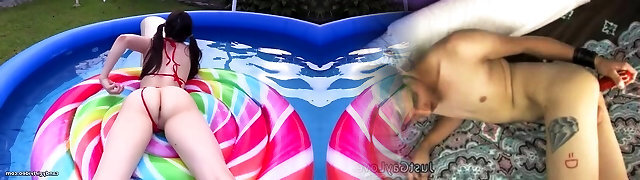 Hefty bottomed white chick Lilly Hall is humped hard by the pool