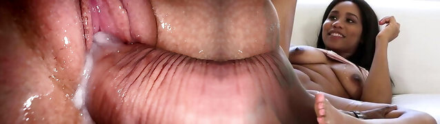 I fucked my teen stepsister, taut creamy pussy and close up jizz shot