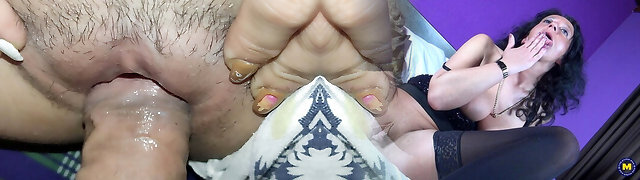 Splendid cougar with Big hairy clit fucks young muscular bbc boy