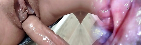 Slow fucking wife's poon and urinating inside. Close-up