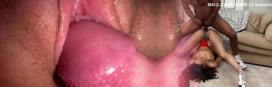 Close-up video of sloppy Adirana Chechik getting fucked by black guys