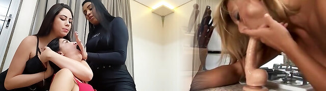 Subordinated teen gags throating cock