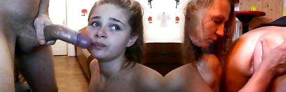Horny teen faceholes stepdaddy's big dick before taking it inside