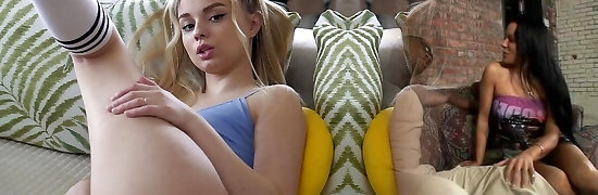Incredible porn industry stars Abbie Cat and Sophie Lynx in horny creampie, facial adult movie