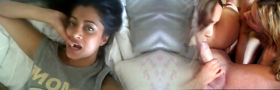 Sister brought my stepbro to hairy gf and put it under him...