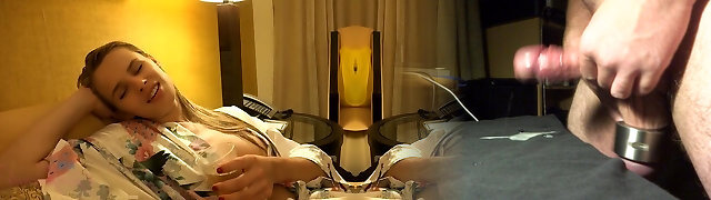 Small sausage guy cum all over his hot girlfriend's body