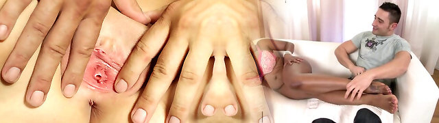 Innocent female opens up juicy fuckbox and gets deflorated