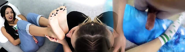 After riding stiff dick charming blonde cutie makes dude suck her sexy feet