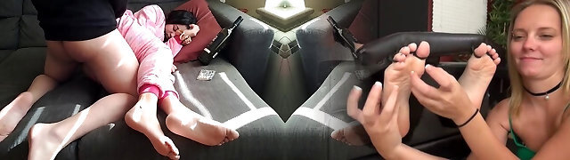Curvy Busty Teen Bombshell Enjoys Foot Massage While Taming Massive BBC With Her Mouth & Pussy