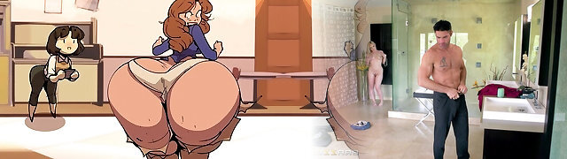 Animated bitch displays her slutty friend how much she can enlarge her huge ass.