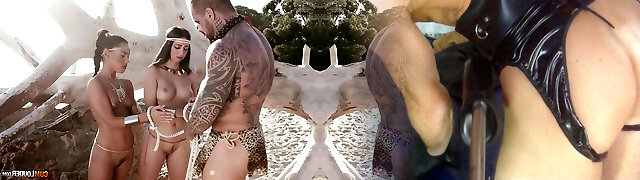 les filles tribales d'amazon satisfont leur grand chef tatoué