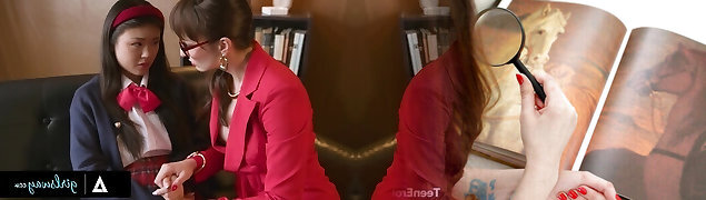 une petite étudiante asiatique mince trouve du réconfort dans le sexe lesbien sensuel avec son professeur sexy aux gros seins