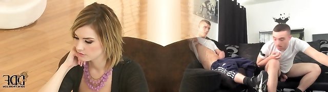 une femme rousse aux grosses traites harcèle effrontément un collègue en t - angel wicky
