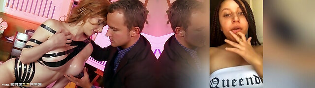 Breasty MILFs avec l'arraché de piercings en bas nylon et corset