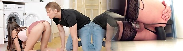 Kinky sweeties shag the biggest belt cocks and spray lo