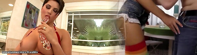 Sunny Leone in Red Swimsuit Glass Faux-cock Fun In Tub Video