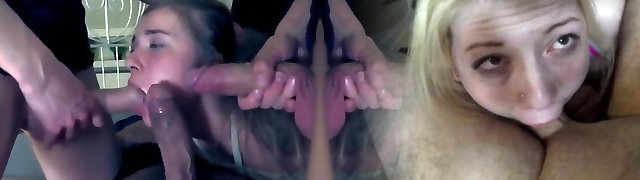 Blondes Andrea Acosta and Vicky Vixen Sharing Eight Peckers in Gang-bang