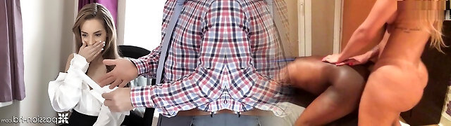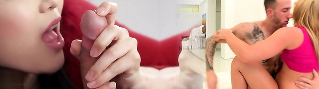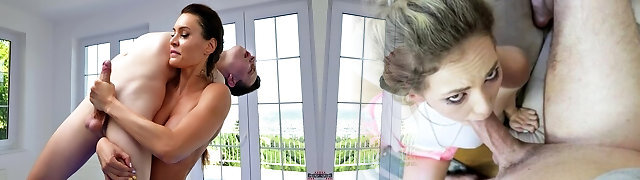 Versatile bi-atch busty blonde housewife gives head before sensual doggy