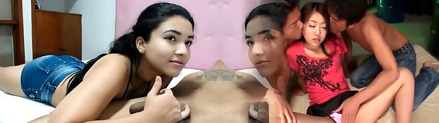 Asian Teen Loses Bet And Gives A Handjob