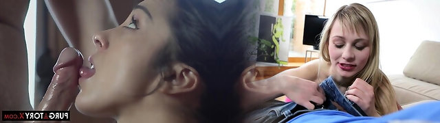 Inexperienced blonde girlfriend homemade blowjob and handjob