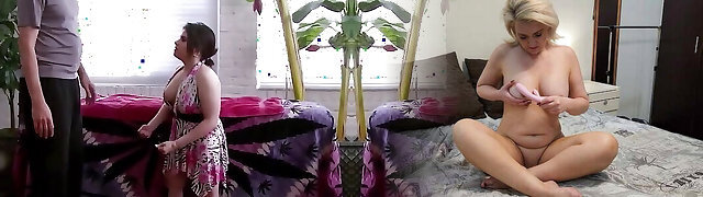 BBW slut and mischievous midget girl share stud's rock hard dick