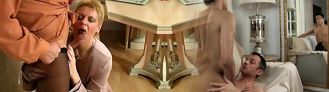 Young Pummels Mature maid in pantyhose