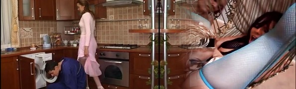 This super-bitch loves to show off her nylon covered ass on top of the kitchen counter
