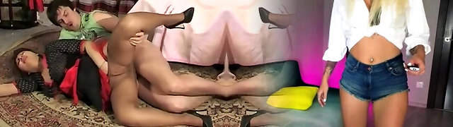 Russian couple both in pantyhose