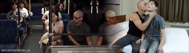 Two Guys Fucking a Busty Japanese Girl's Enormous Milk Cans in the Public Bus