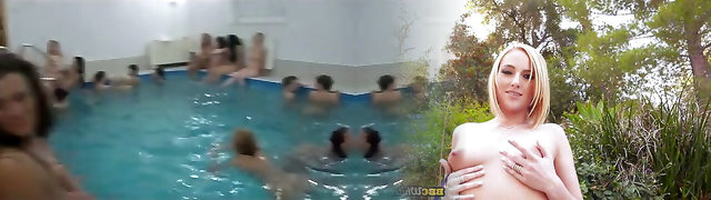 Russian/Ukrainian nude chicks playing in pool