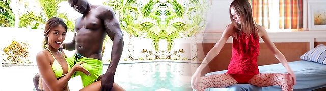 Danni Rivers takes on a lagre black hard-on in amazing intercourse by the pool