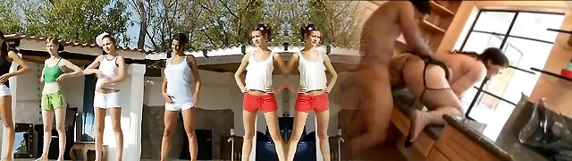 College teenies in bikini horny group sex by the pool