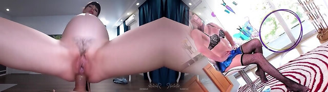 домохозяйка прего скачет на эбонитовом стояке так, словно завтра не наступит