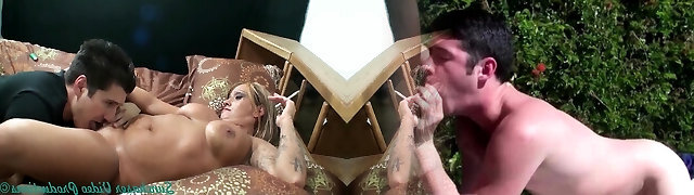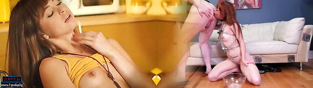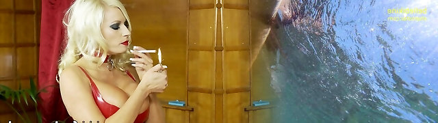 Blonde Sex Industry Star with Big Tits Smoking While her Wet Pussy Gets Licked by Latex-Clad Lover