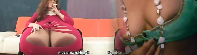 Chick with ginormous bust poses for the camera whilst smoking