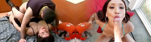 Smoking hot Chinese chick having fun with more rods at once