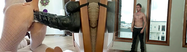 Horse Size Dildo for my tight ass while I wear Fishnet body stockings