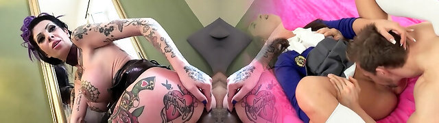 Full body tattoo mega-slut gets her bubbled ass fucked doggy style