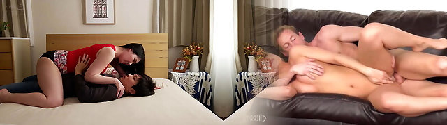 The half sister happily jumping on his brother's penis developing his little booty after school