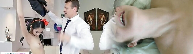 Petite asian banged by tall sugar stepdad
