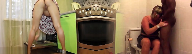 the nanny was cleaning toys at home and bent over rear end, picked up her robe and fucked