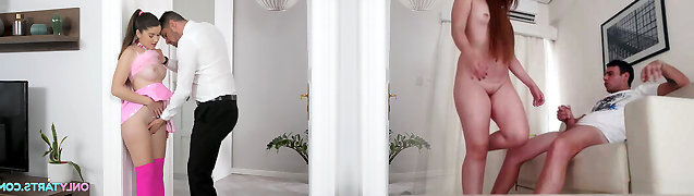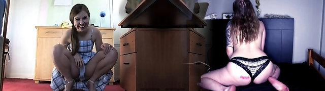 Risky upskirt fuck with a petite step sister in law in white stocking in her room