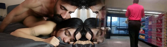 Cute Arab doll lies submissively while her hungry husband insatiably nails her pussy.