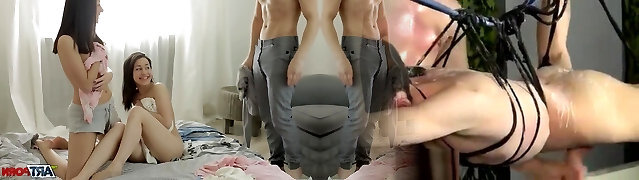 Horny European babes torn up by Asian men while sleeping - AMWF