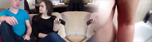 Scorching brunette in panties teasing sisters bf on couch
