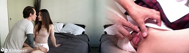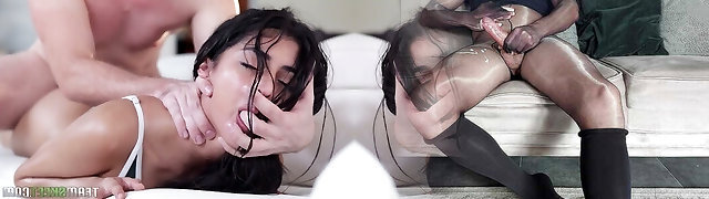 Teen babysitter with tight and very wet creamy pussy getting big humungous cock